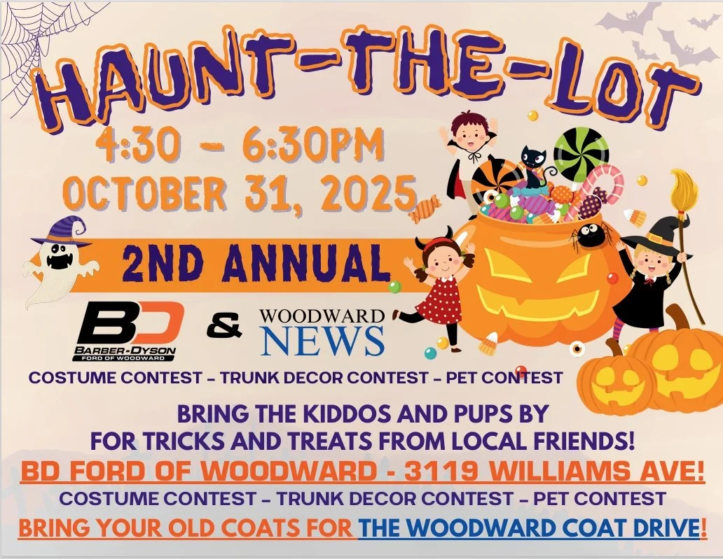 Haunt - The- Lot Friday, October 31, 2025 4:30 PM 6:30 PM Barber-Dyson Ford of Woodward 3119 Williams Avenue Woodward, OK, 73801 United States (map) Google Calendar ICS